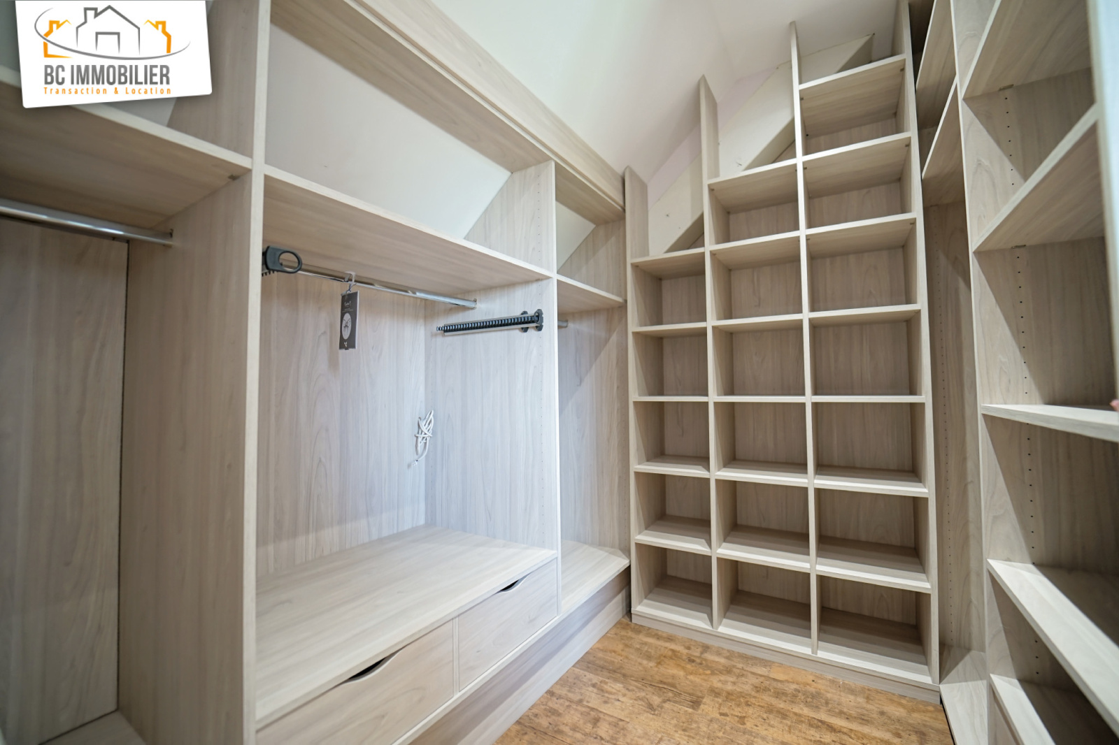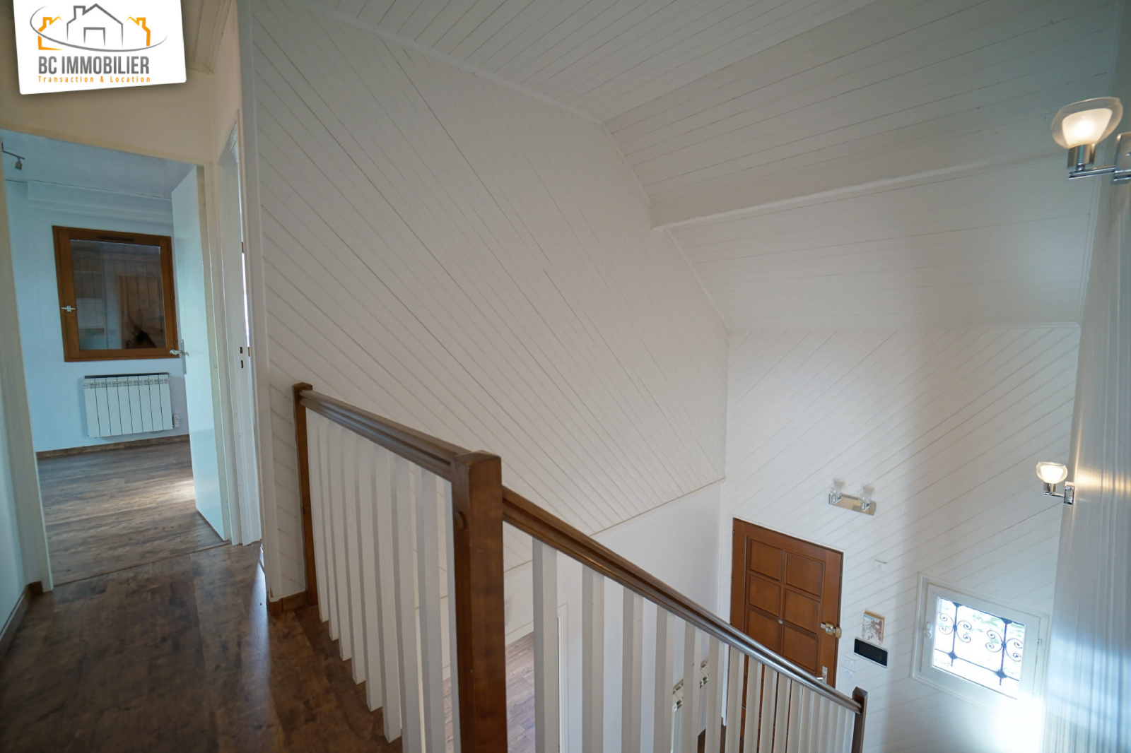 Maison individuelle avec de belles prestations de 113m2, édifiée sur un grand terrain. Elle est composée d'un rez-de-chaussée avec un grand espace de vie avec cheminée, d'une cuisine équipée fermée, d'une chambre et d'une salle d'eau. A l'étage, une salle de bains avec son wc, 2 chambres avec placards et une troisième chambre avec dressing.