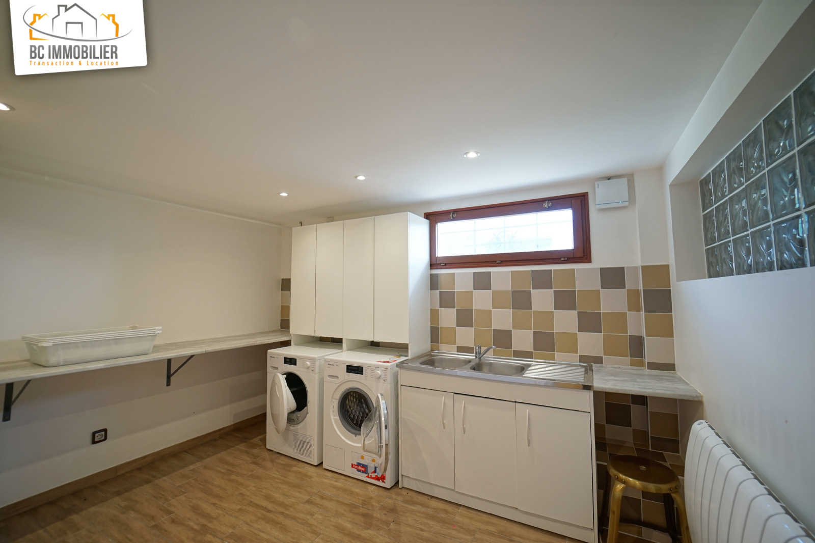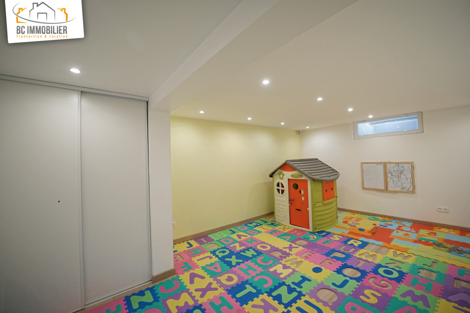 Elle bénéficie d'un très grand sous-sol aménagé avec un grand espace de rangement, une buanderie, d'une salle de jeu ainsi que d'une chambre avec salle d'eau.