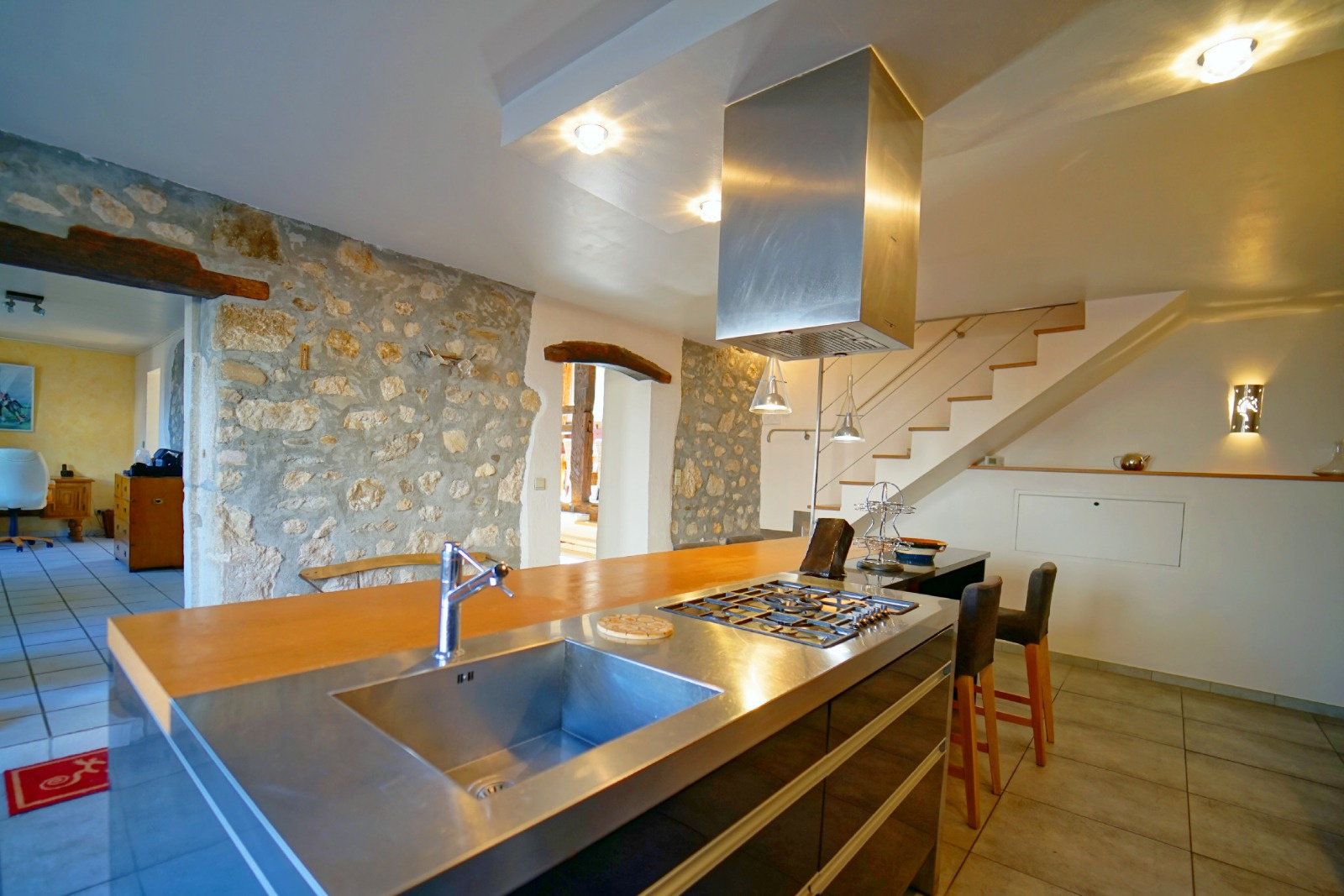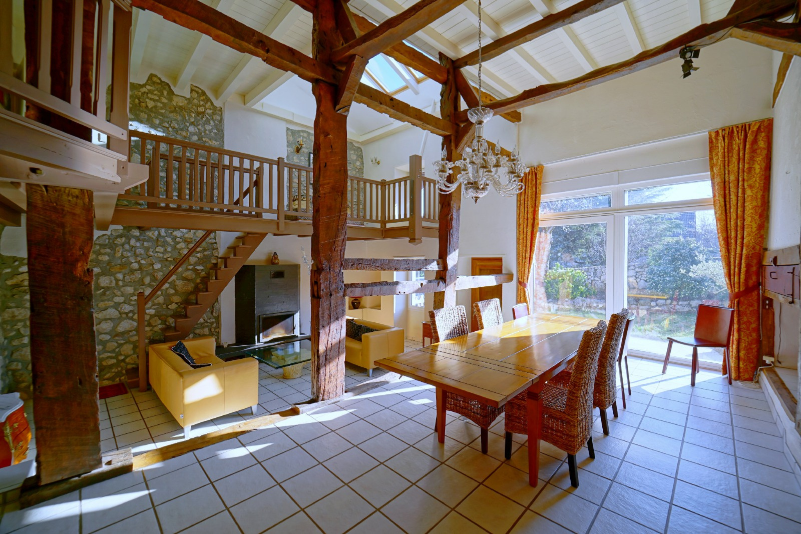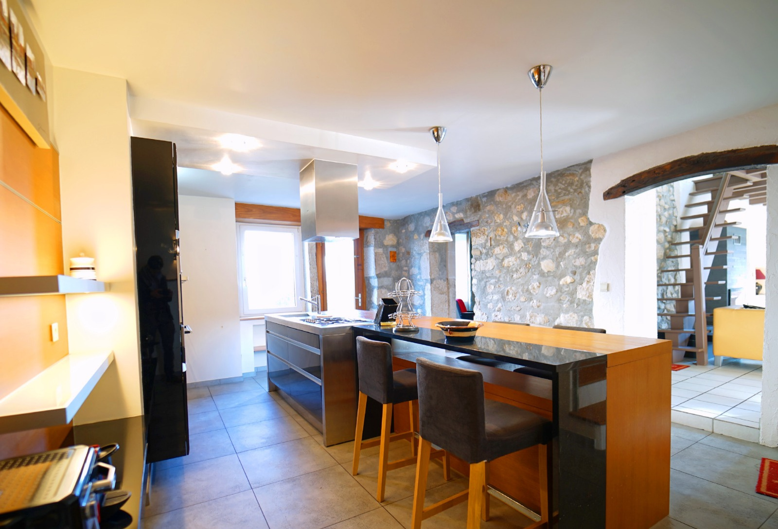 Based in Thoiry, this beautiful dressed stone house, built during the XVIII century will seduce you with its large living room, its exposed beams and its high ceiling, its well equipped kitchen, its office (which can be used as bedroom), its 3 bedrooms, each one has a bathroom, its additional shower room,.