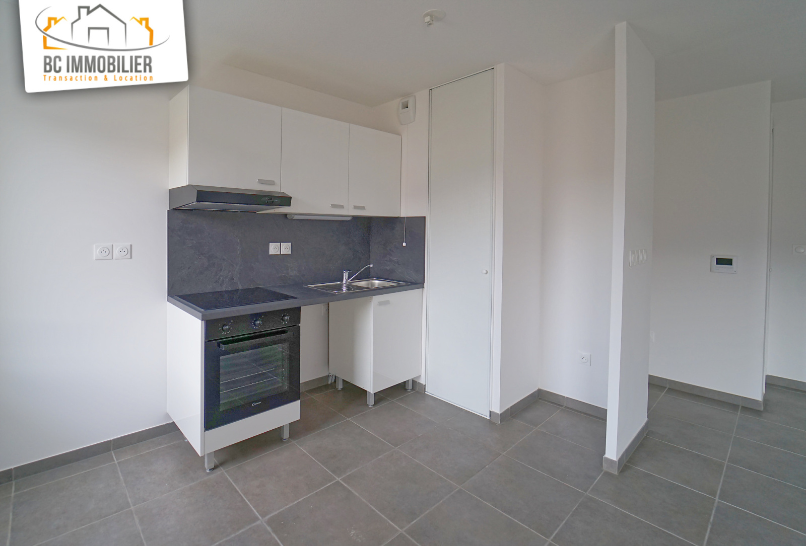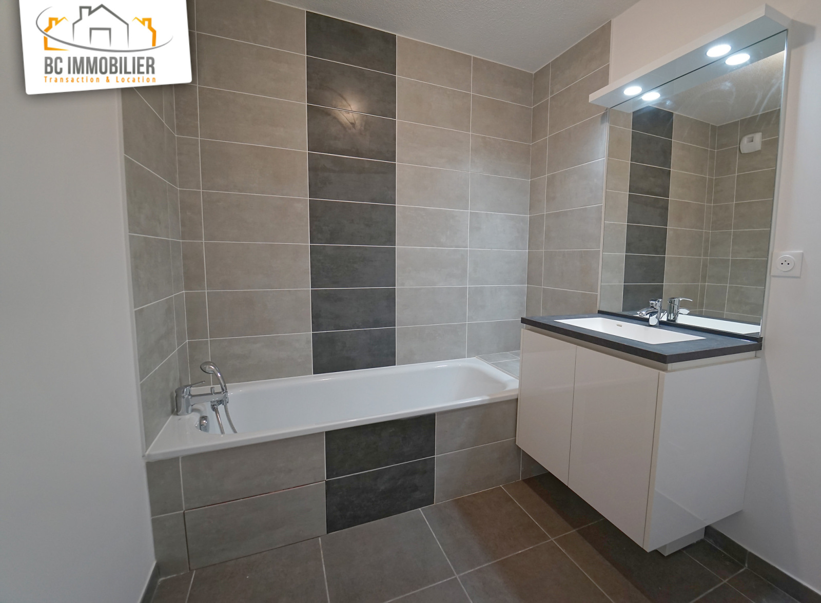 Résidence Le Leman à Gex, Appartement T3 d'une superficie de 59,72m2 avec balcon de 4,98m2, offrant un hall d'entrée avec grand placard mural aménagé, une cuisine équipée (sauf réfrigérateur) ouverte sur séjour, un wc, une salle de bains, une grande chambre de 13,89m2 avec placard mural et une petite chambre de 9,74m2 avec placard mural. Ce logement est au 1er étage dans une résidence calme et sécurisé.