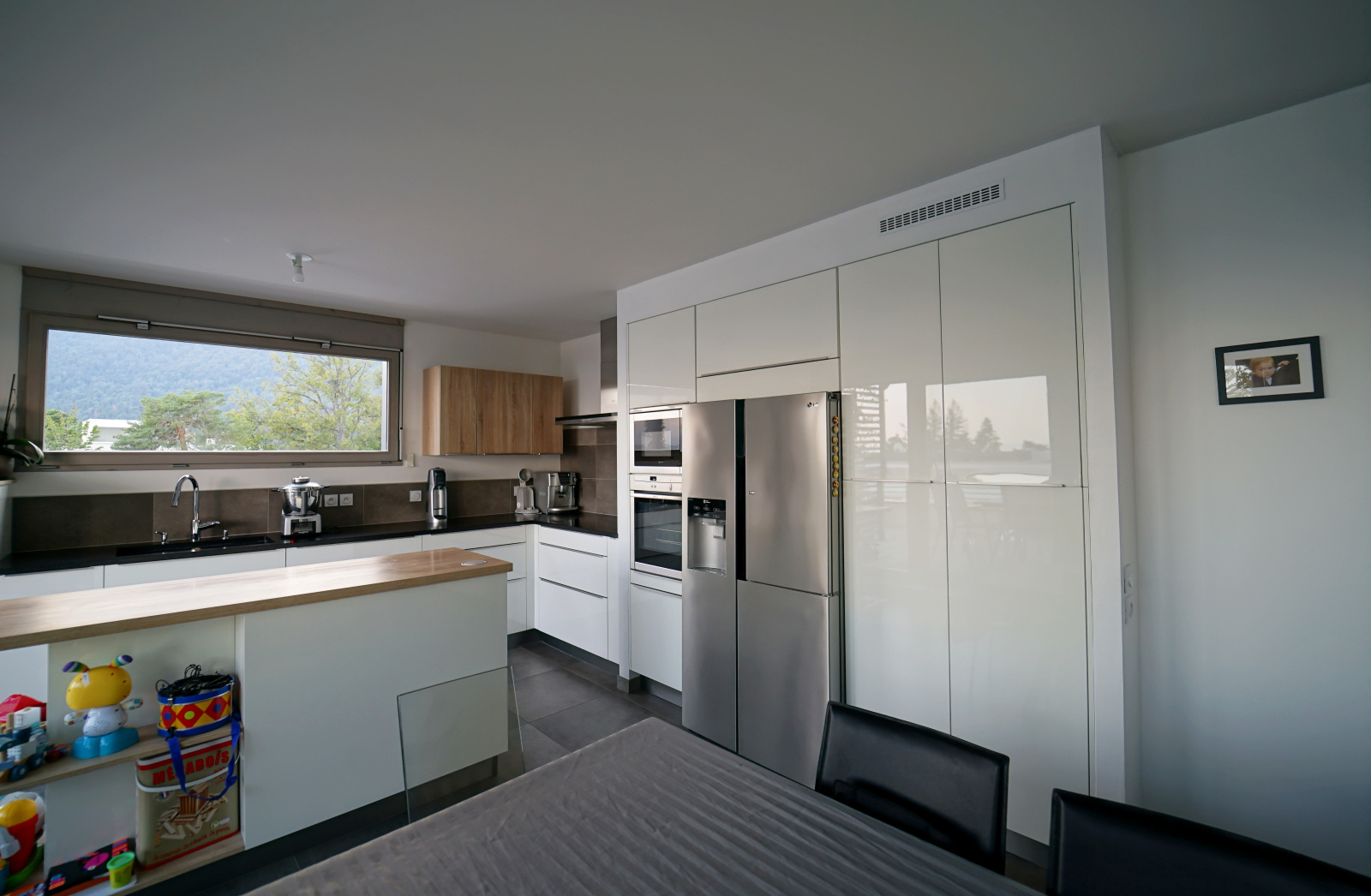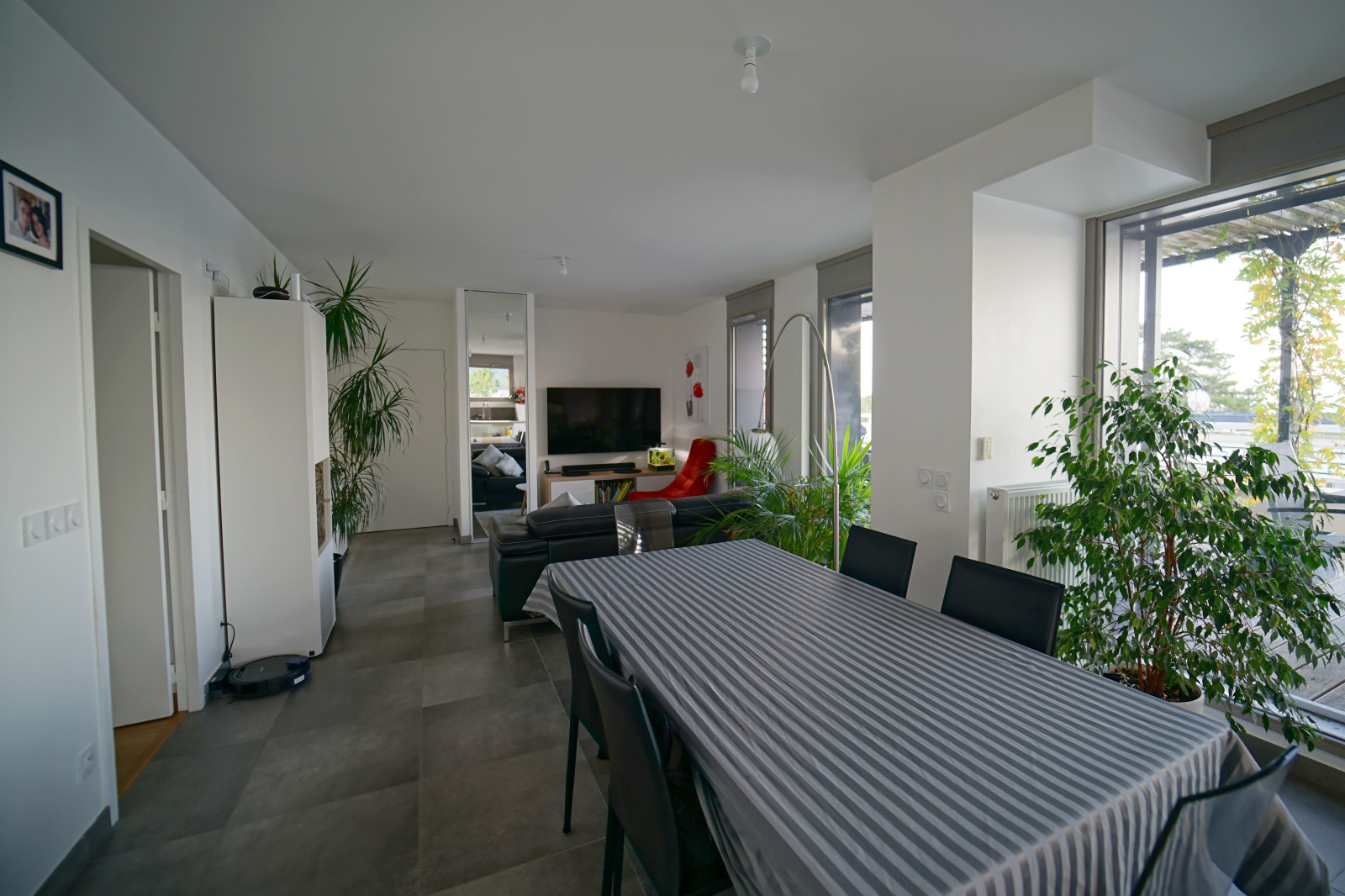 Venez découvrir cet appartement idéal pour une vie de famille. Il comblera petits et grands grace à sa somptueuse terrasse de 65 m² qui pourra acceuillir autant, les jeux des enfants, que les chaises longues des parents afin de profiter d'une vue dégagée sur le Jura et le bassin Lémanique. Il est doté d'une cuisine entièrement équipée ouverte sur le sejour. La partie nuit dispose de trois chambres dont une suite parentale avec dressing et salle d'eau, une salle de bains et un WC.