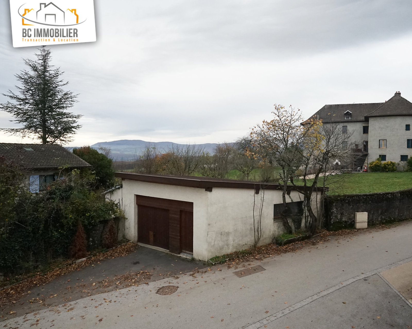 En annexe un jardin en contrebas, un garage et une palce de parking extérieure.