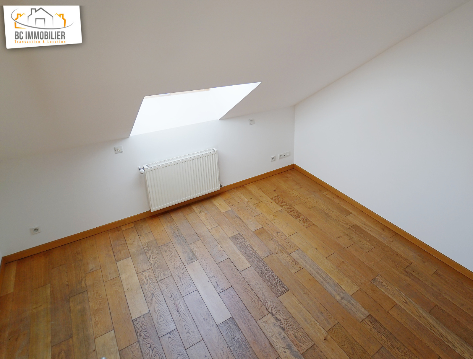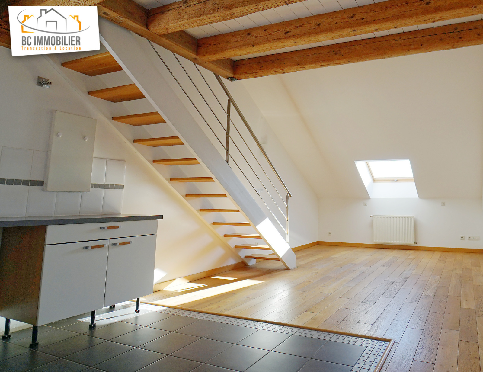 L'appartement a été entièrement rénové avec poutres apparentes et sous pente, rare en location.