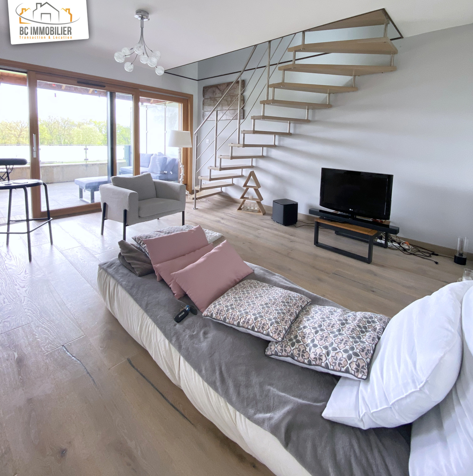 Venez découvrir ce joli T3 en duplex, situé au calme dans une résidence récente. Cuisine équipée ouverte sur salon avec accès terrasse, une chambre, une salle de bains. A l'étage, un grand espace mezzanine faisant office de deuxième chambre avec petite salle de douche attenante. Cave et garage complètent parfaitement ce bien.