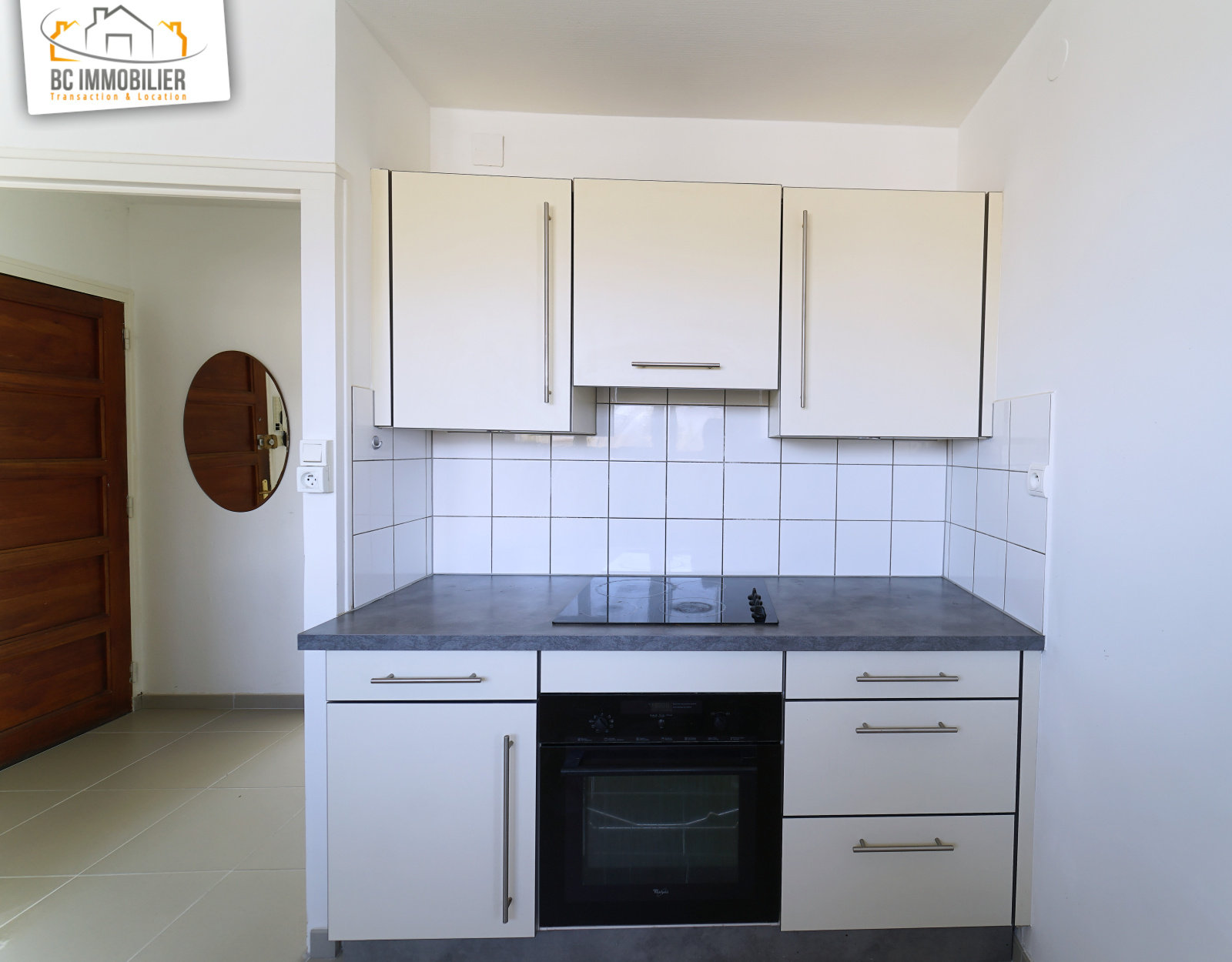 Comprenant une cuisine fermée et semi-équipée avec un cellier-buanderie attenant.
