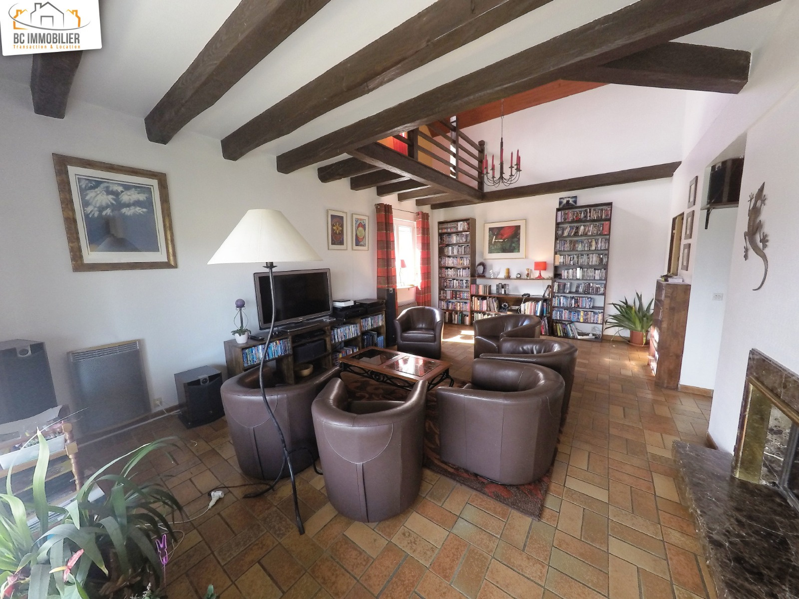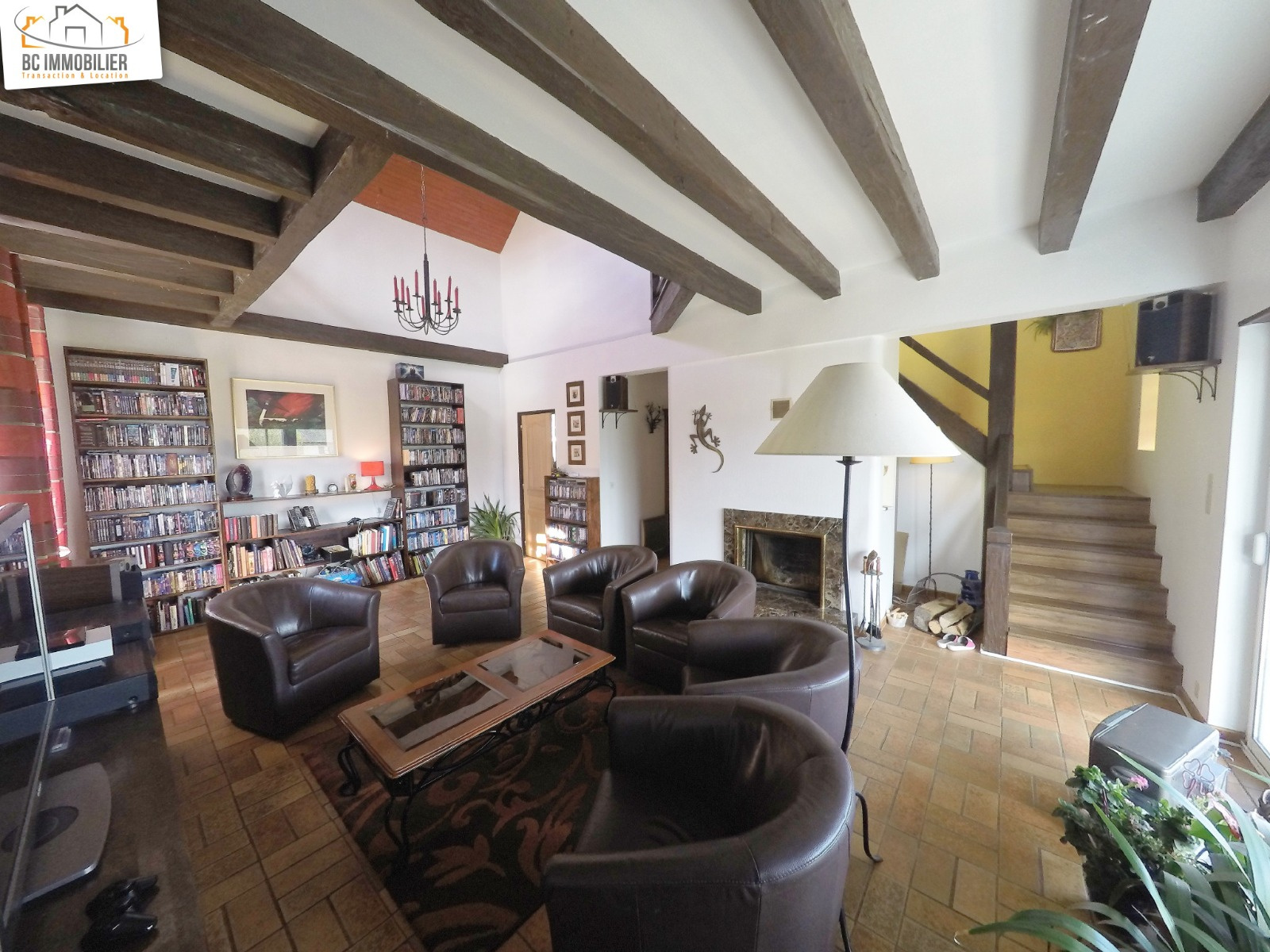 Sur 2 niveaux, elle comprend au rez de chaussée entrée, cuisine équipée séparée, salle à manger, 2 salons et une belle pièce de vie avec cheminée.