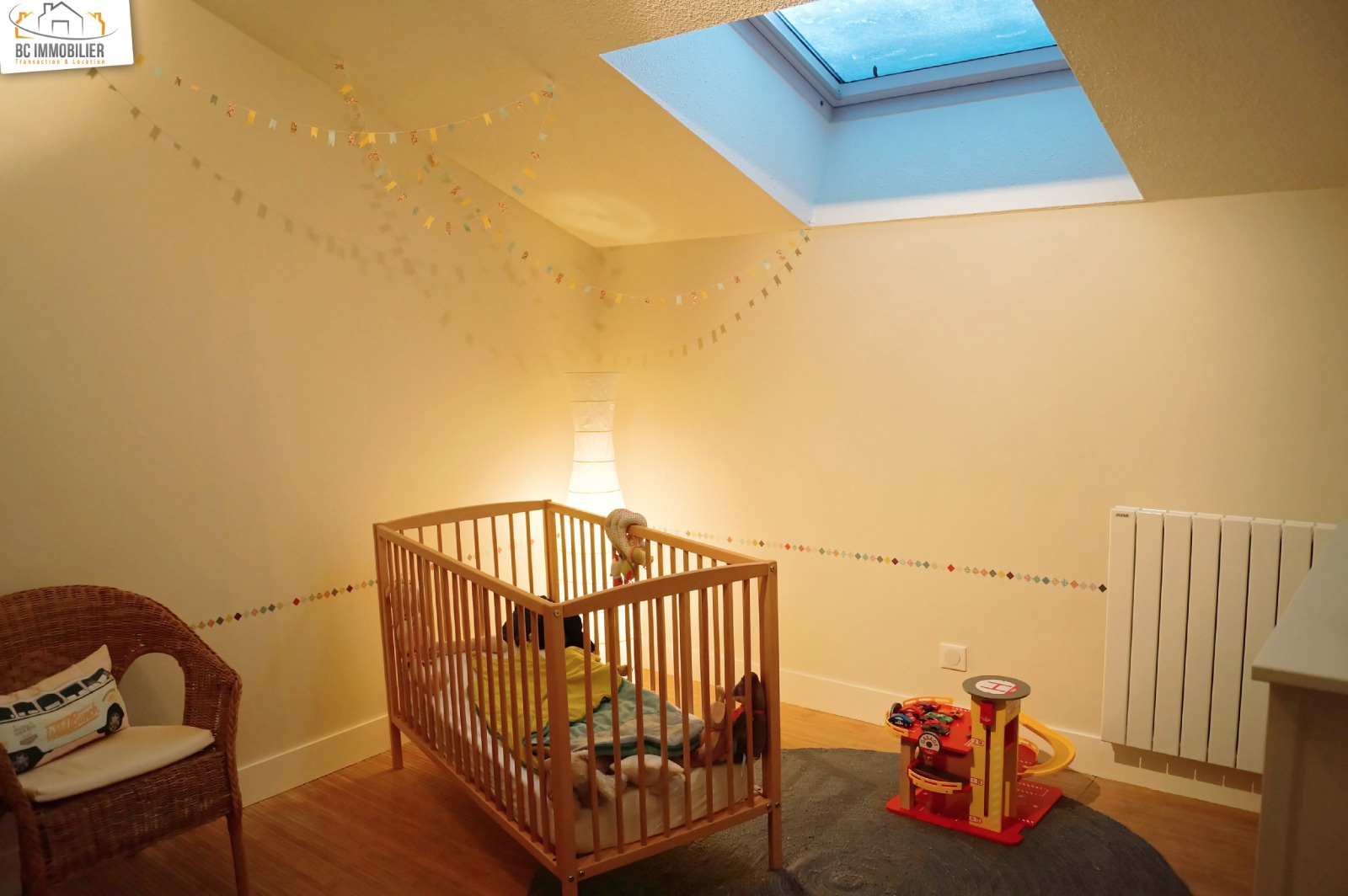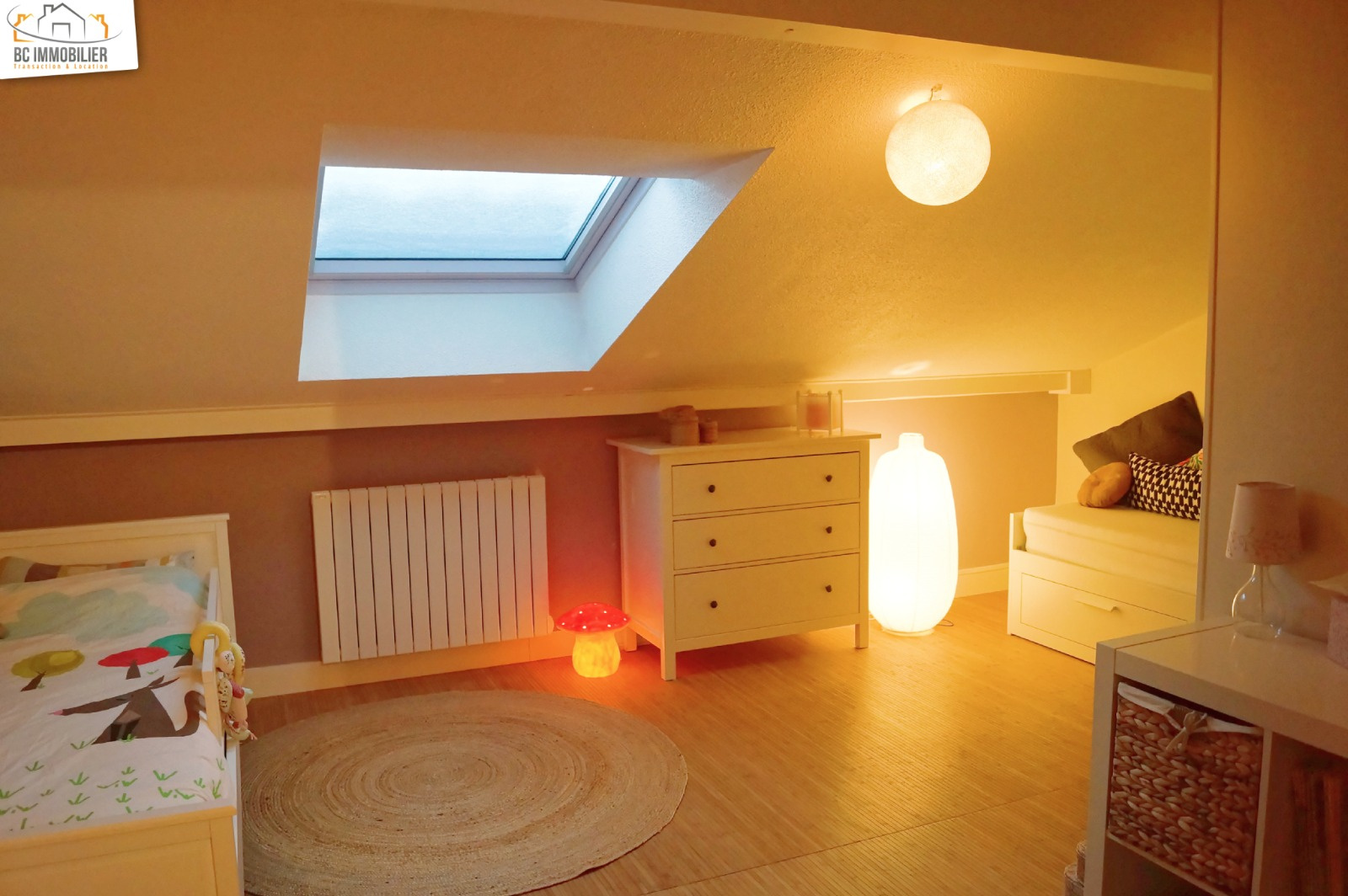 A l'étage, 3 belles chambres sous pentées, un coin bureau, une magnifique salle de bains avec velux, et un large palier avec rangements.
