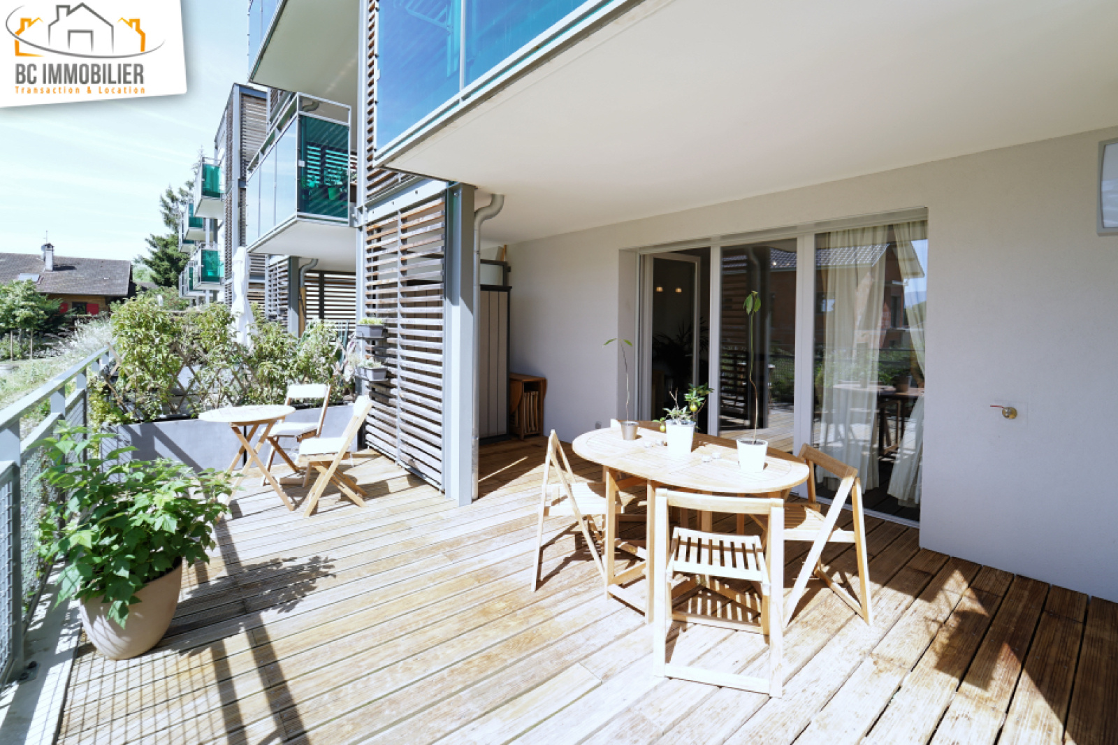 PREVESSIN, à 2 pas de l'école de la Bretonnière, dans une résidence neuve de 2015 de très bon standing situé à 2 pas du bus O, venez découvrir ce magnifique 2 pièces de 46m2 disposant d'une très belle terrasse de 31m2 et parfaitement aménagée.